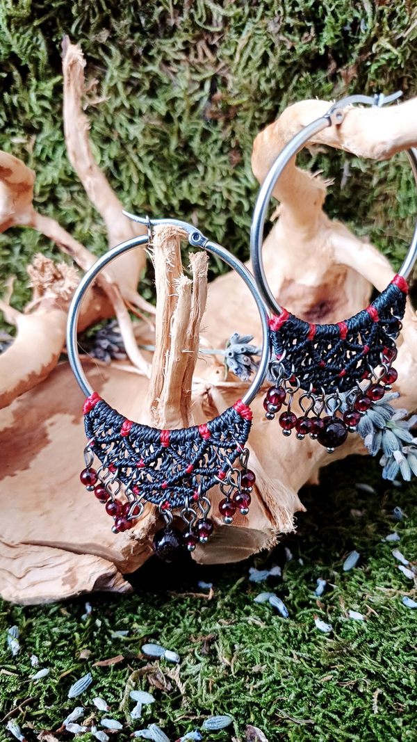 Matériaux : Fil linhasita (anthracite et rubis)