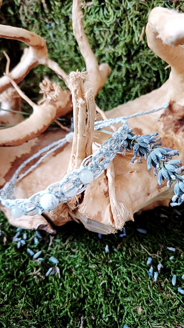 Matériaux : Fil linhasita, Howlite, Cristal de roche, Pierre de lune, Acier inoxydable
