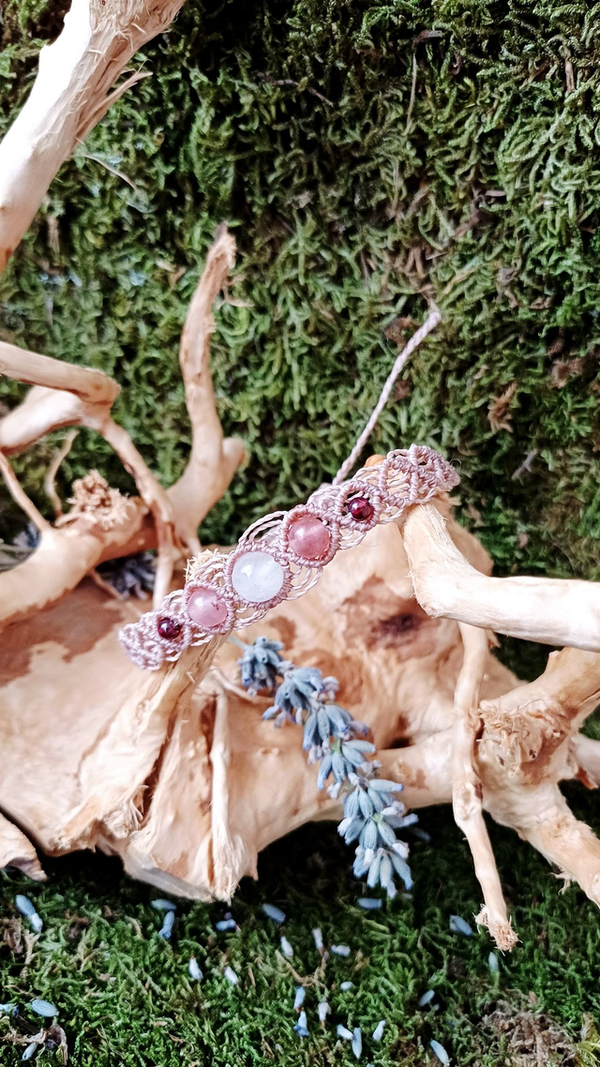 Matériaux : Fil linhasita, Grenat, Quartz fraise, Quartz rose